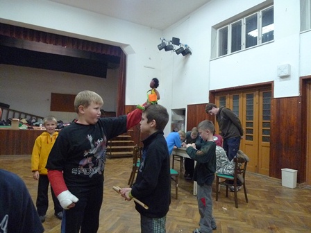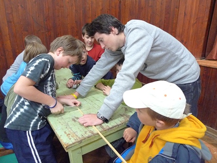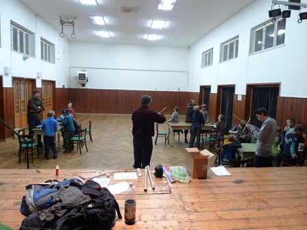 | Hlavní stavitel draků Balů předvádí družinám jak na to. |