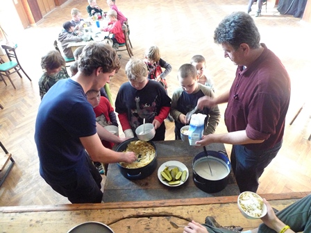 | Oběěéééd! Výborná sýrová omáčka na těstovinách al dente. Přesto řada vlčat dala přednost moučkovému cukru. |