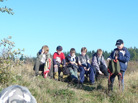 | Pojďme se mrknout ven, když je tak hezky. Tady odpočíváme při výstupu na Buchtův kopec |
