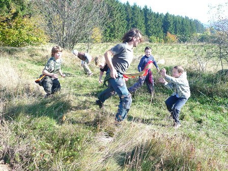 | Pozorně sledujeme, komu drak vyletí nejvýš a kdo ho ve vzduchu udrží nejdéle. |