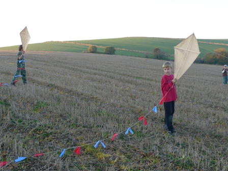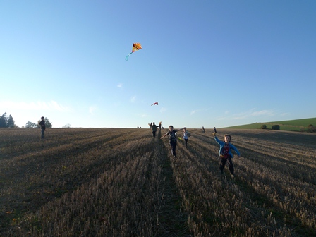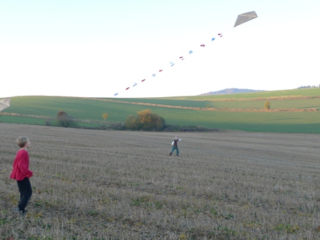 | A konečně jsme se vydali na pole vyzkoušet naše létající draky, tady zatím ty které jsme si s sebou přivezli. |